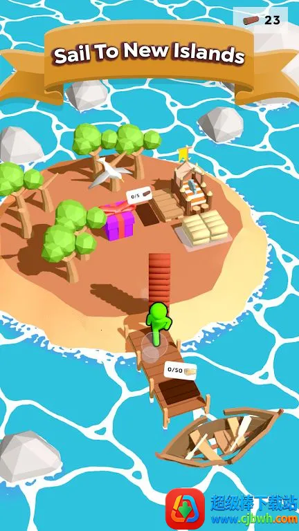 2、多个岛屿待探索,工具背包可升级,充满无限可能。