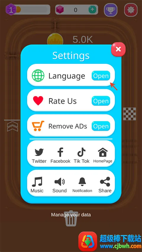 1、进入赛车大亨游戏内点击右上角的齿轮。