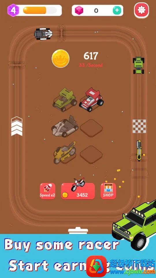 挂机收益:即使离线,赛道上的车辆也会持续赚取金币,实现财富自动累积。