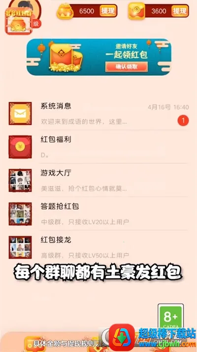 游戏玩法丰富,完成挑战任务可赢丰厚红包大奖,还有不同类型游戏免费领红包。聊天领红包玩法新颖,画面减压,关卡众多且题目知识面不同。