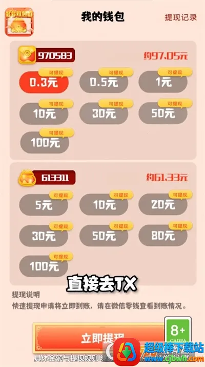 能够快速提现,100金币等于1元,1000金币等于10元,提现秒到账,直发微信红包。