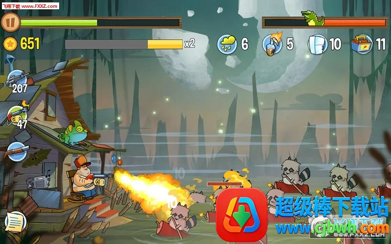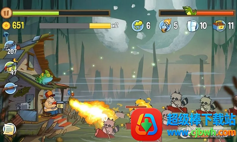 沼泽派对是一款美式幽默风格的塔防射击游戏。玩家化身沼泽木屋守护者,抵御诡异生物侵袭。游戏有丰富角色、武器,多样道具,玩法简单易上手,融合跑酷元素,关卡不断解锁,带来紧张刺激的守家之战。