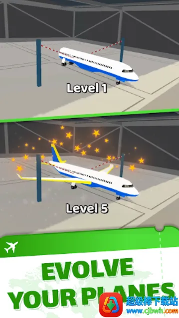 1、可进化飞机:收集升级,让飞机变身高科技飞行利器。