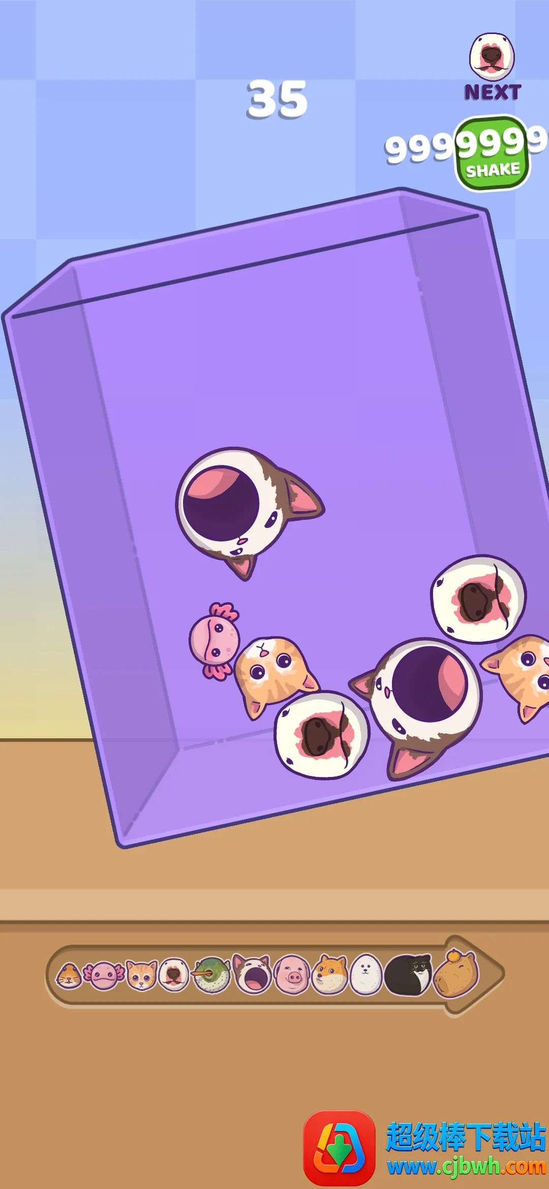 其创新组合玩法带来全新解谜体验,锻炼大脑思维。无尽关卡模式每次布局都新,长时间保持新鲜感。全年龄适应,操作简单,画风卡通可爱,音乐轻松。还有多种游戏模式,如小伙子模式、猫模式、狗模式、水豚模式等,各有独特合并规则和目标。