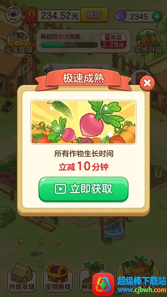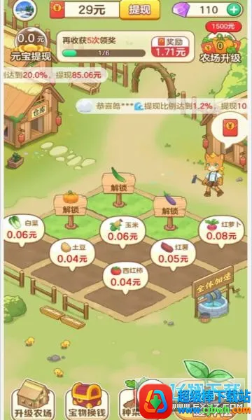 想通过快乐农场小屋来赚钱吗?那这款游戏绝对适合你!它是一款卡通风格的休闲益智经营模拟游戏。在游戏里,你能体验到丰富多样的农场经营玩法。可以种植各种蔬菜拿去售卖,获取更多利益来装扮农场。还有超多可爱玩法,比如装饰宠物。游戏优势明显,只有提升经营能力才能建立农场,完成任务能获红包奖励,还能自由种植农作物、饲养家畜自给自足。玩法亮点多多,带来最快乐的模拟人生,各种经营模式可自由体验,激发思考与挑战动力。通过管理努力获得更多奖励,播种收获和交易都有音效,增加互动趣味性。画面卡通可爱,背景音效逼真,背景音乐悠扬,能营造宁静农场氛围,让你沉浸其中,减轻生活压力,快来体验,轻松赚钱又享受游戏乐趣!