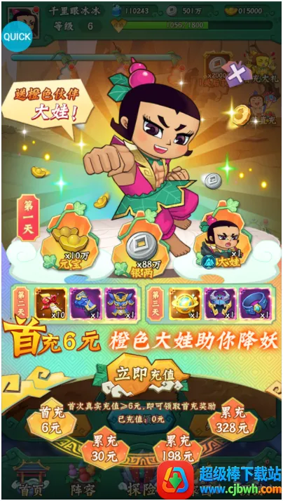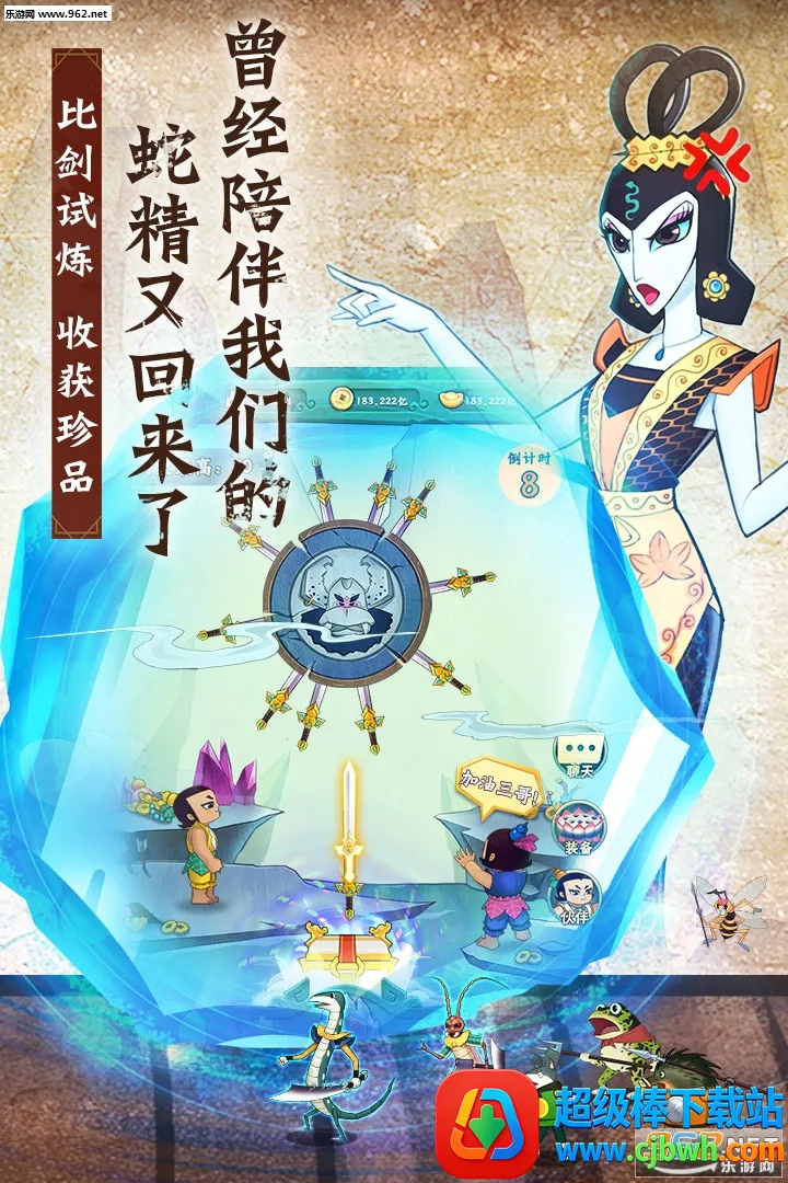 3. 经典再现:依托经典剧情,带你追忆童年,与葫芦兄弟共闯妖巢,和妖怪展开对决。