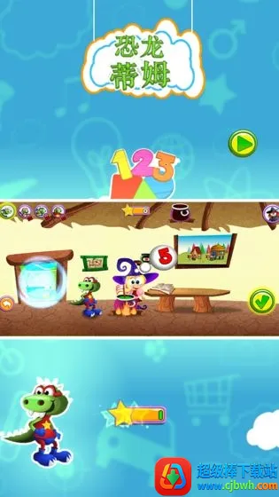 恐龙蒂姆游戏是一款卡通奇幻风格的休闲益智手游,玩家要帮小恐龙蒂姆从女巫手中救家人。有海量关卡,玩法轻松,画风Q版卡通。融合多种学习元素,适合3 - 12岁儿童,能锻炼多种能力,寓教于乐。