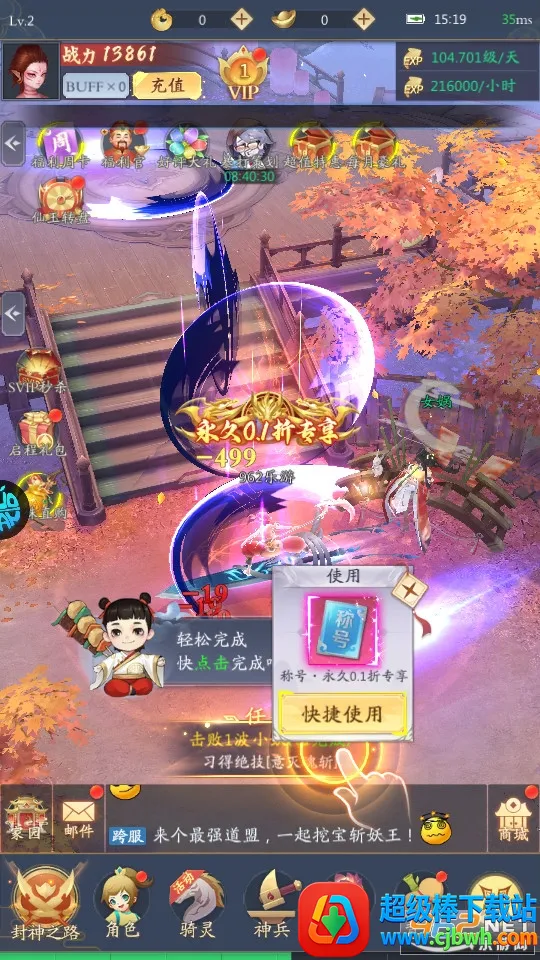 神兵系统加成:在游戏中获取神兵可获得大量属性加成,玩家能养成自己的神兵,提升实力。