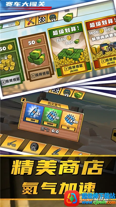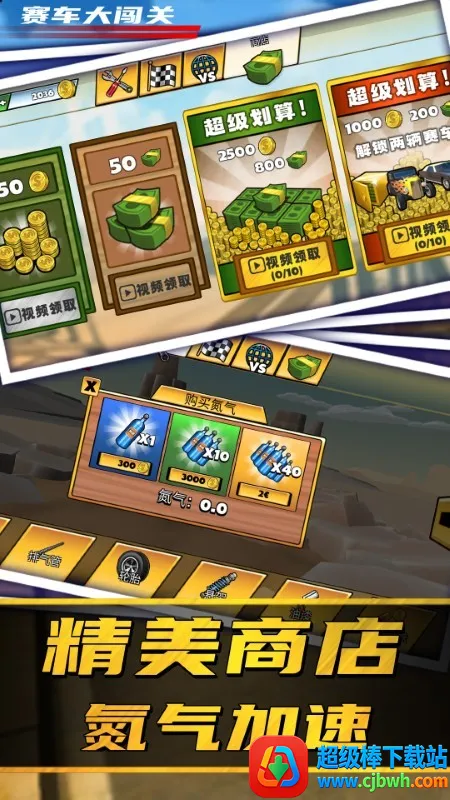能自由改装升级车辆,提升汽车性能,还可购买氮气加速,做出炫酷动作,体验赛车闯关的惊险刺激。