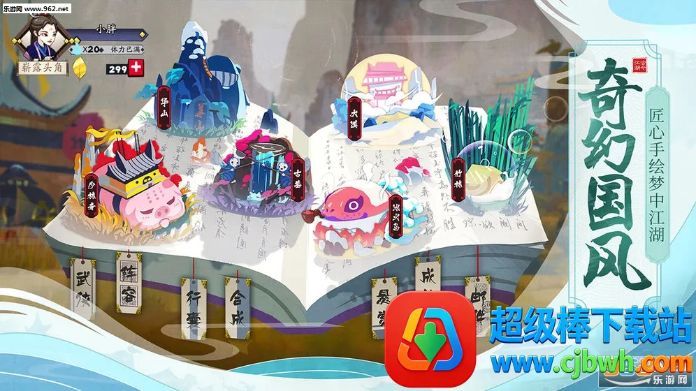1. 独特国漫画风:以国风水彩手绘为主,融合泥人等传统文化元素,打造极具幻想的武侠世界。