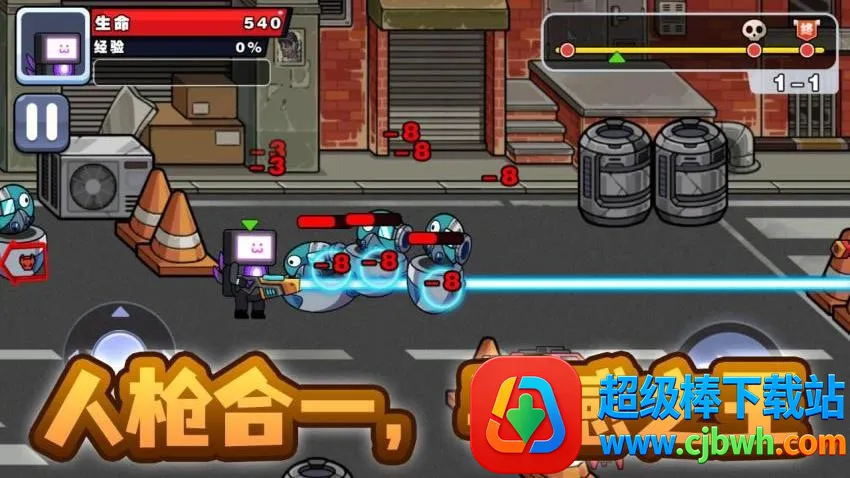 3、通过滑动屏幕移动操控角色,点击射击键攻击,提高操作熟练度,高效打击丧尸。射击敌人时留意伤害,适时调整节奏并利用掩体,提升输出消灭敌人。