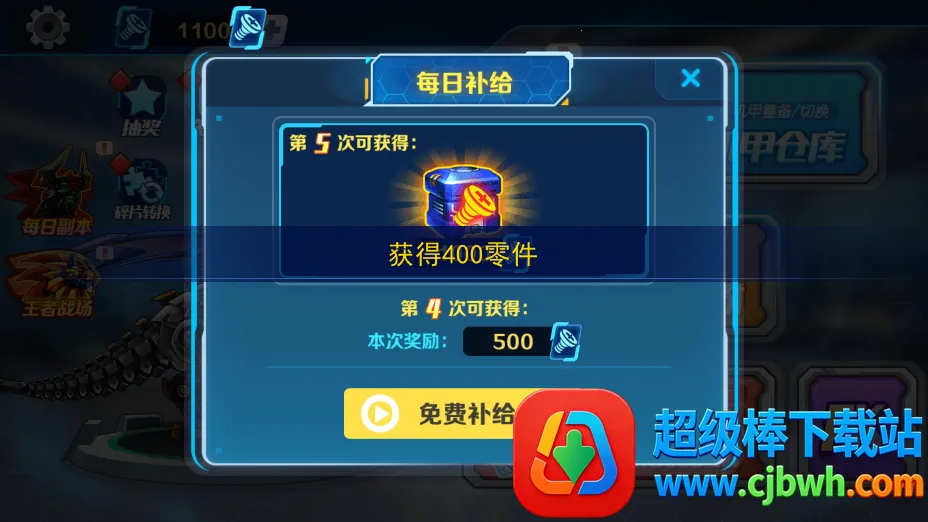 2、部件升级系统:通过收集碎片升级机甲,添加部件提升攻击力、防护力等。