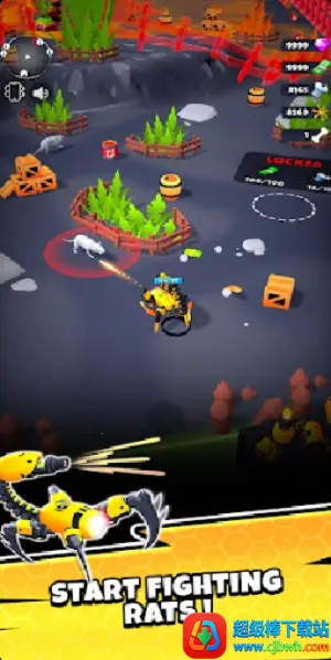 玩家可操控灭鼠机器人在初始区域移动,收集金币与宝石,用于购买武器和升级角色,同时要躲避老鼠袭击,利用地形周旋。