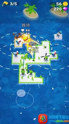 在伙伴大作战中,玩家能不断扩大木筏面积,增强防御并创造进攻机会。