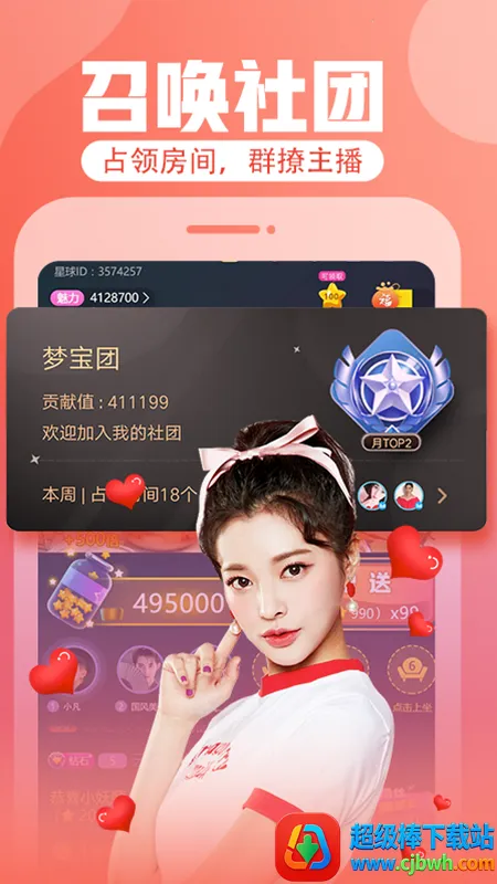 2、拥有趣味互动,比如社团占领主播房间、主播PK、幸运刷刷乐等,助你和主播甜蜜互动。