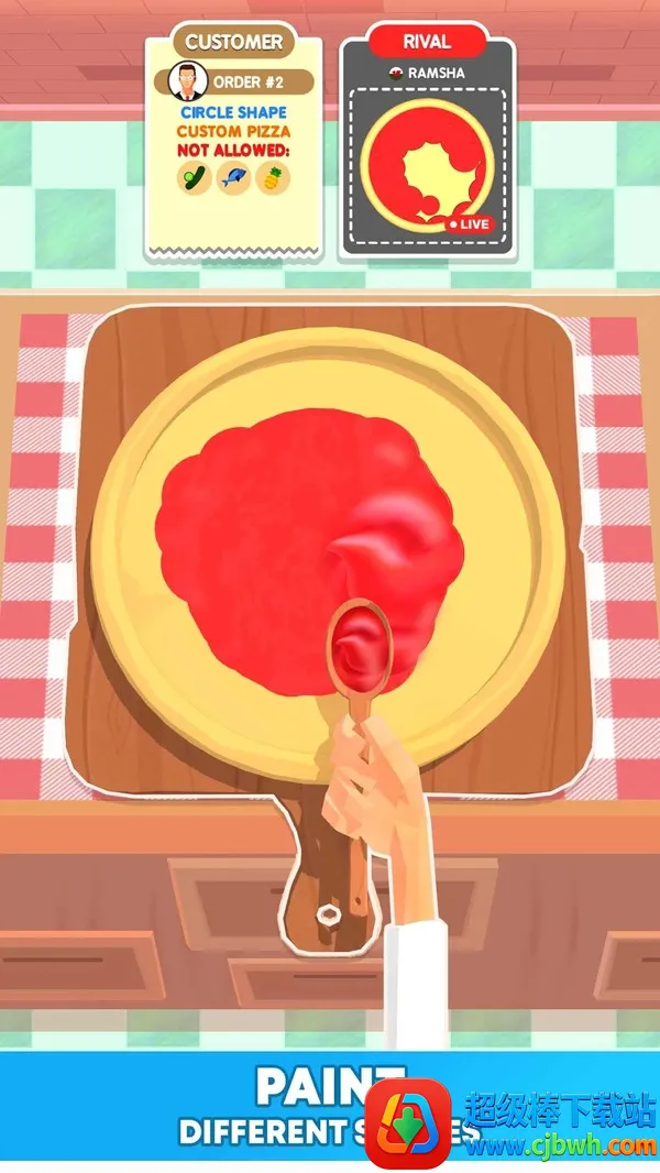 精准制作流程:玩家要按步骤完成面团擀制、酱料涂抹、配料铺放等操作,每个环节都需控制好力度与时间,以此确保披萨成型均匀。