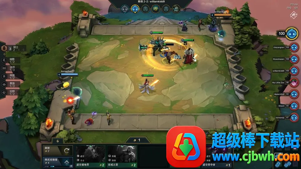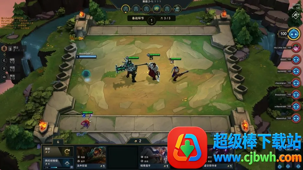 选秀环节:八名玩家的小小英雄共同传送到选秀区域,抢到心仪的装备或棋子,每个阶段第三个小回合也有选秀,玩家会传送到各自棋盘。