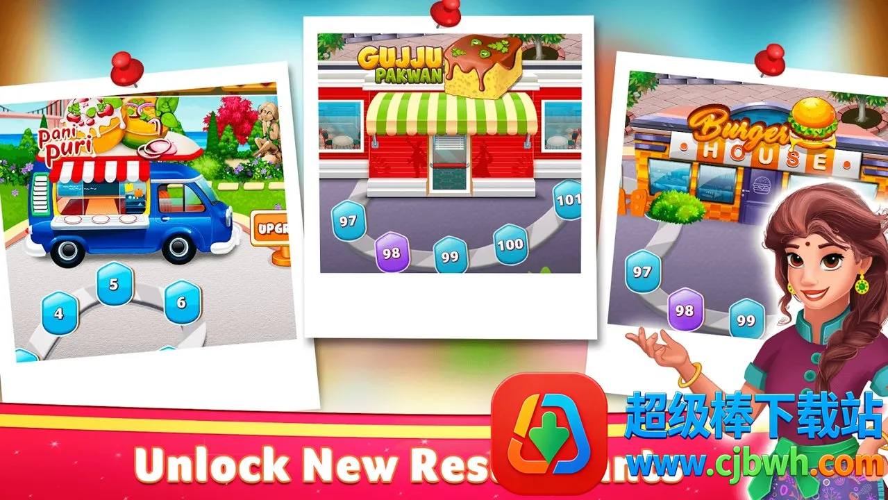 以印度美食为主题,通过关卡挑战烹饪各种特色美食,满足来往客人,获取丰富收益。