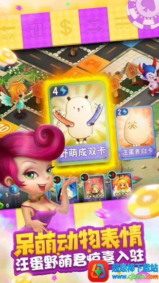 2. **卡片道具丰富**:可控制步数、强夺土地、现金盖屋、拆屋、迎神送神及陷害对手等。例如飞弹卡攻击对手,核弹卡范围更大,宝石卡能让部分卡片作用翻倍。