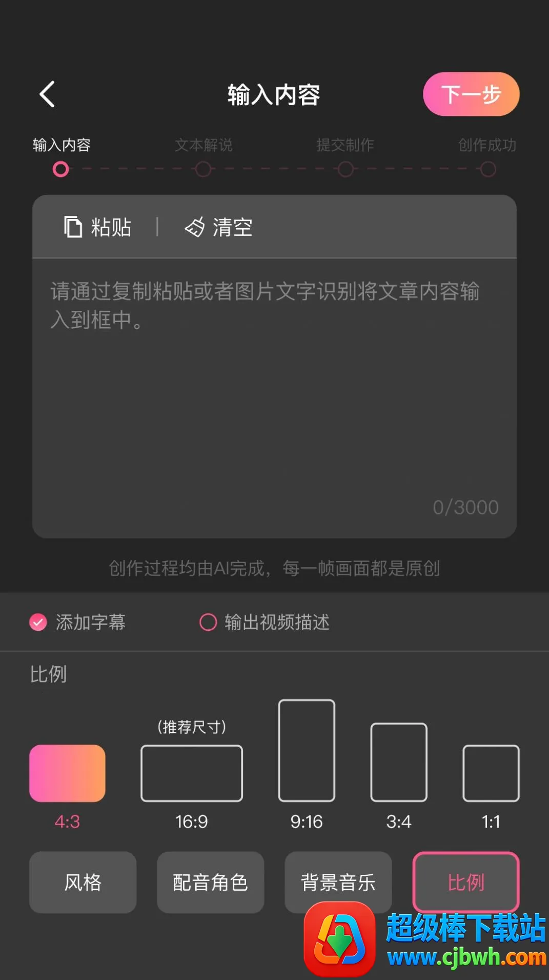 2、选择AI自动生成图片模式,导入小说文章内容,支持四种导入方式!