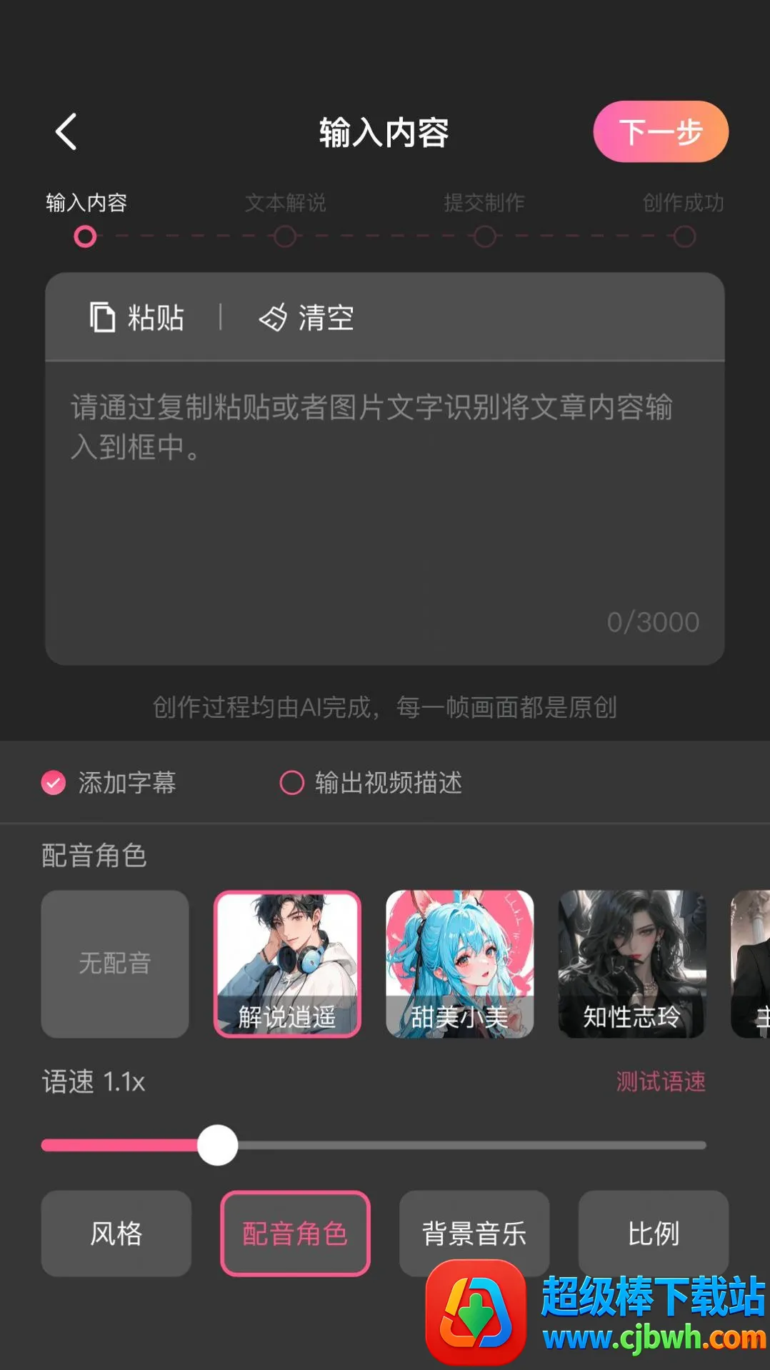 1. 支持解说文案,一键生成,让文案更丰富全面。