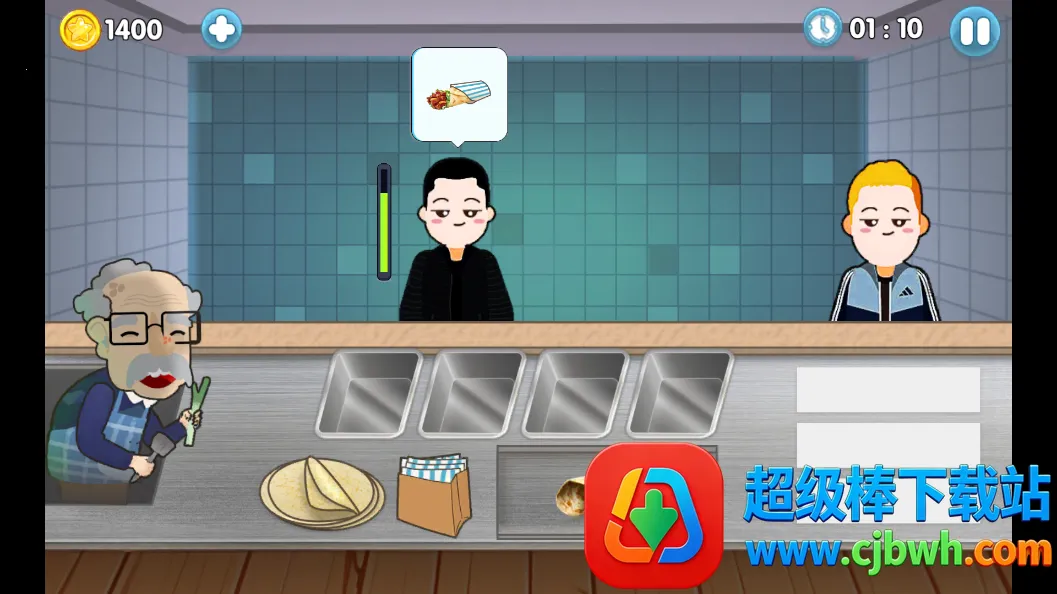 游戏玩法简单又有趣。点击进入游戏,先给左边老人添加调料,客人上门点单后,按要求制作卷饼完成订单就能赚钱。还能解锁煎饼摊、米粉摊等多种模式,拓展业务。这里菜品丰富,能根据客人需求定制,随着等级提升解锁更多美味,升级厨具提升效率。遇到各种滑稽挑战,增添不少乐趣。而且达到一定等级自动收银系统解锁,方便管理收入。总之,沙威玛传奇小店能让你轻松享受模拟经营的快乐,快来试试吧!