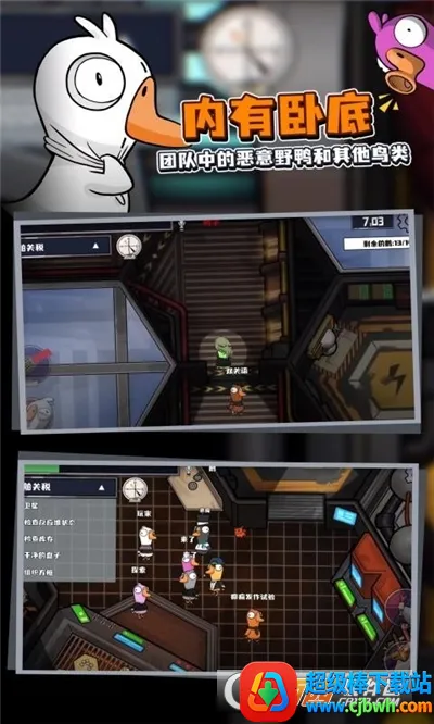 游戏中玩家可自由选择不同角色,像鹅要完成任务,鸭子则充当坏蛋击败他人,还有25多个可选子角色,如渡渡鸟、食人族和变体精灵等,带来丰富多样的游戏体验。