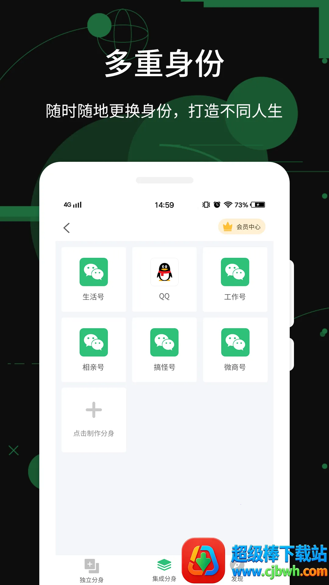 4. 变身份:满足社交聊天多开需求,能切换不同身份状态,如工作、生活、交友、微商等各用一个号。