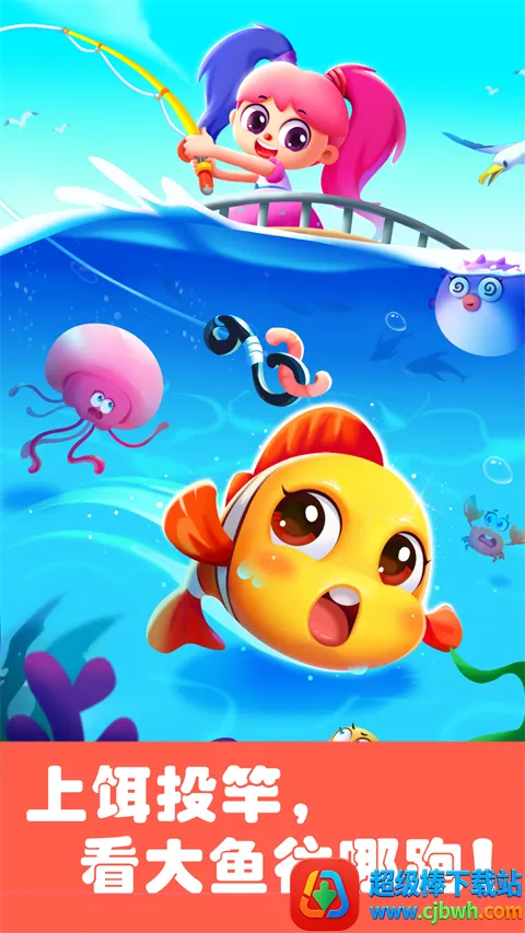 孩子能在游戏中体验趣味钓鱼,选购钓竿和饵料,找准时机诱鱼上钩,培养耐力。