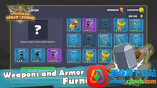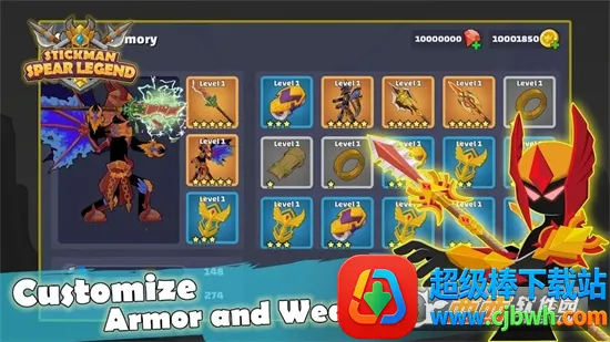 游戏中有5种稀有度的众多武器、盔甲和珠宝,玩家击败敌人后可进行掠夺。并且能锻造武器,提升其统计数据,让自身变得更强大,成为最强火柴人。