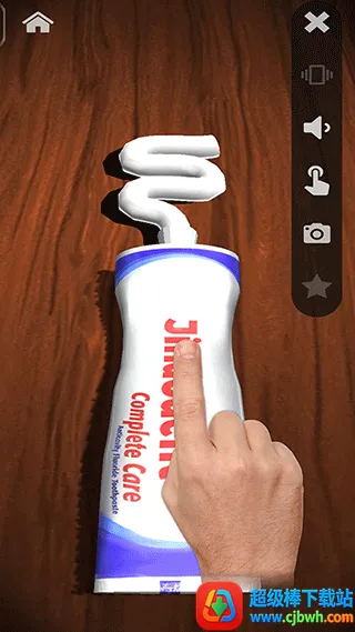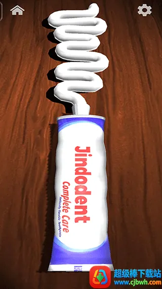 4、进入,页面会出现一个拧开的牙膏,点击牙膏可以挤压,还伴有模拟真实的声音。