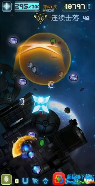 这是一款怀旧复古风的空中射击手游,以地球空间站为背景展开冒险。玩家操控战机迎战100波敌军,战斗推进时背景画面随之变换,空中俯瞰视角可尽览太空美景。其玩法借鉴传统雷电类射击游戏,采用经典街机模式,手指拖动战机移动攻击,还能收集掉落宝石加强火力升级解锁战机。战斗中,10多种武器补给丰富多样,不同武器特效各异,带来超爽激战体验。游戏内有15个不同个性的飞机供玩家选择,多达10种强大武器,火力最大为5级,再次补充会提供一个护盾。游戏玩法非常丰富,有多种战斗模式,精致细腻的画面风格,流畅刺激的射击战斗冒险体验,带给玩家愉快的游戏体验。