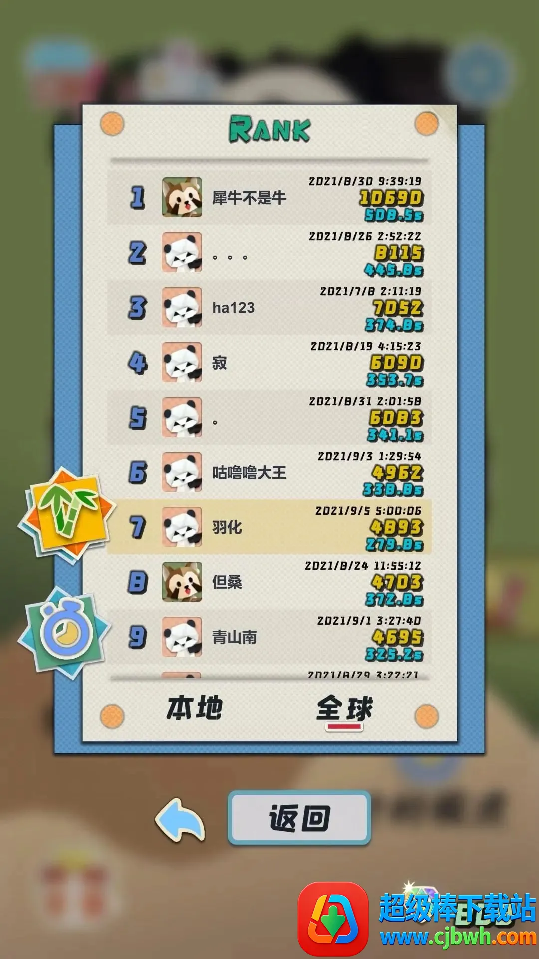 1. 两种玩法多样体验:游戏拥有经典模式和计时模式。经典模式下,熊猫完成任务有三次复活机会,完成任务通关,否则失败;计时模式中,熊猫需在有限时间内完成任务,完成通关,未完成则失败。