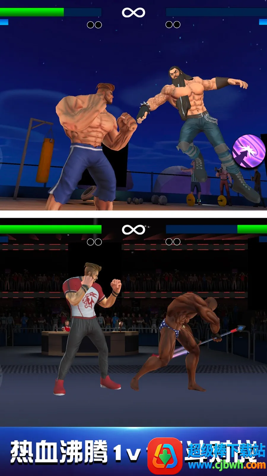 这里有多名可解锁的英雄角色,每个都有独特背景故事和战斗风格。你能选择喜欢的英雄走上擂台,通过合理衔接拳击、踢腿、摔跤等攻击手段,耗尽对手血量赢下胜利。游戏采用卡通画风,自由度高,还有流畅丝滑的格斗体验。
