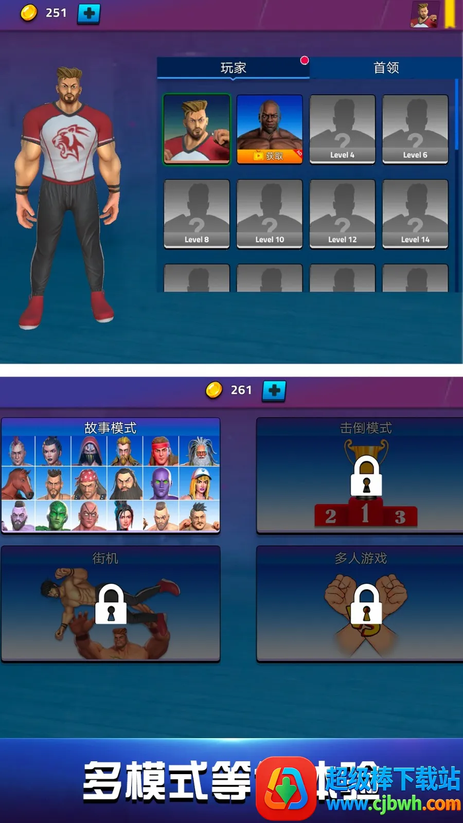 如果你热爱综合格斗,那这款游戏绝对适合你!它是一款动作闯关类游戏,能让你体验拳拳到肉的打击感。游戏采用卡通画风,操作轻松简单易上手,老少皆宜。游戏里有多个关卡可选择,还有多名能解锁的英雄角色。你能选择喜欢的英雄走上擂台,通过合理衔接拳击、踢腿、摔跤等攻击手段,耗尽对手血量来赢取胜利。这里有流畅丝滑的格斗体验,丰富英雄任你选,多种难度挑战满足不同水平玩家。游戏玩法多样,比如点击画面右下角开始进入模式选择界面,有故事模式、击倒模式、街机及多人游戏模式等。在故事模式中,选好关卡就能开启格斗对决,用左侧摇杆控制角色行动,右侧控制攻击方式,轻松享受格斗的热血刺激,快来下载感受吧!