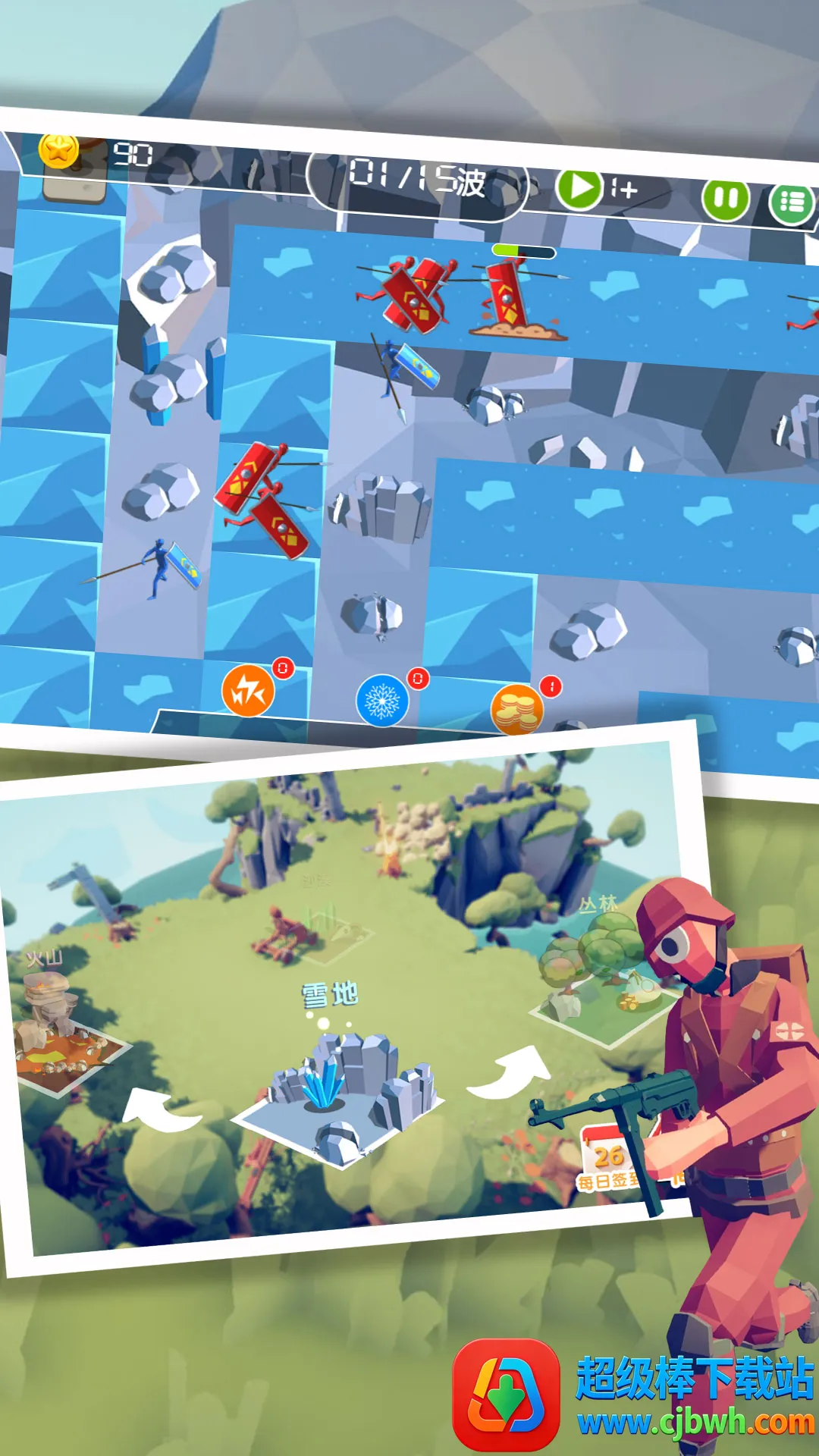 1. 全新塔防玩法融入多样新颖元素,于不同关卡设置。