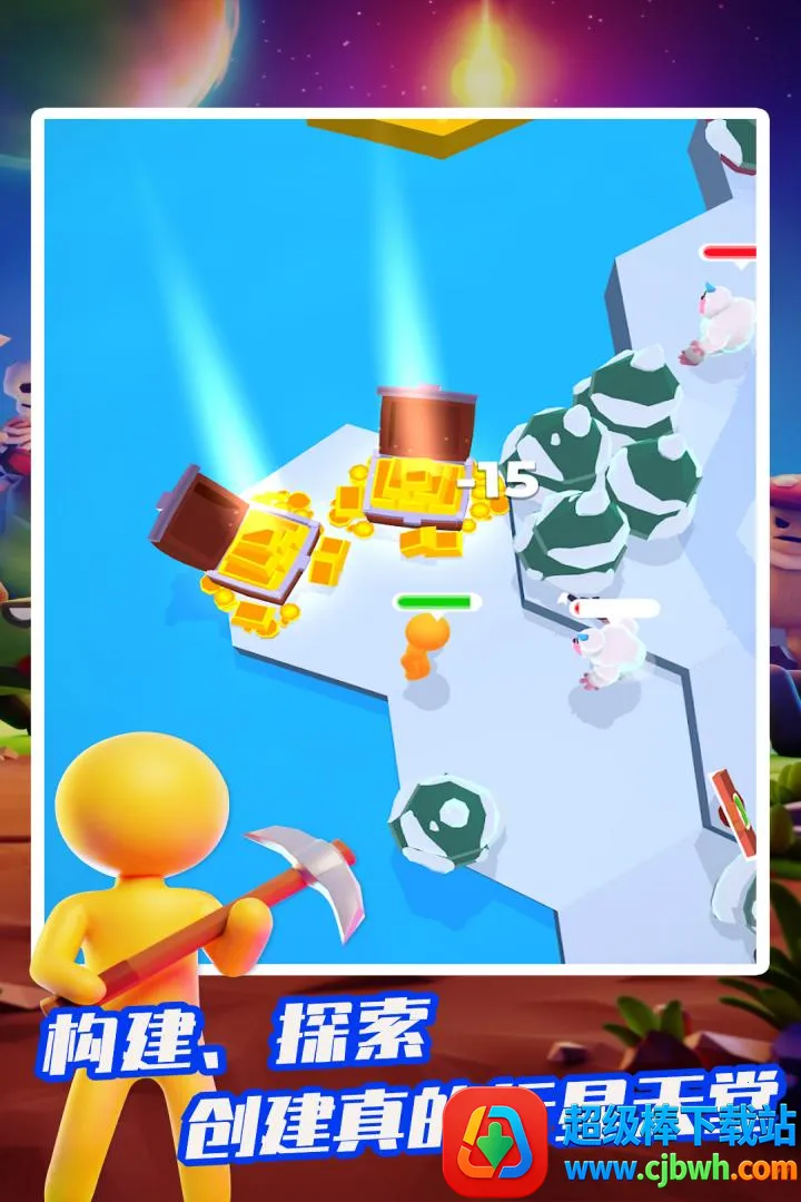 1. 资源采集与建设星球:玩家需采矿、手工艺、伐木、挖掘、冶炼、建筑和园艺,积累15种不同类型资源,打造完美星球。从最初的橙色小人在火箭飞船上,逐步建设成光荣星球,整个过程充满乐趣。