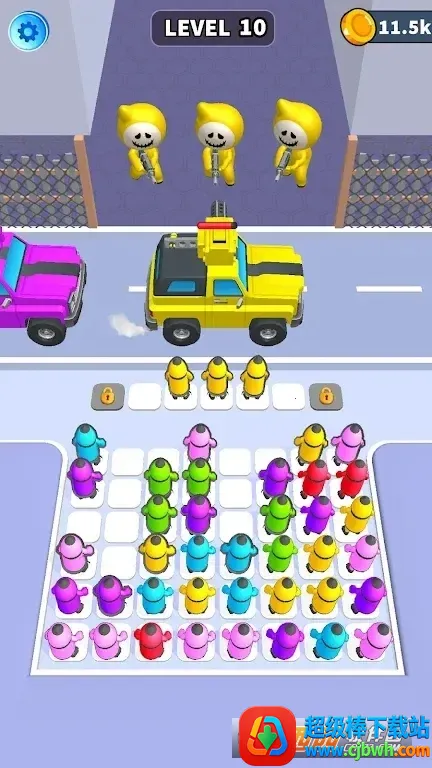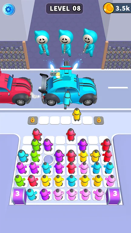 子弹分类与射击:玩家需根据颜色分类子弹,并装入枪中,用相似颜色子弹射击敌人,匹配三个相同颜色子弹可解锁毁灭性攻击。
