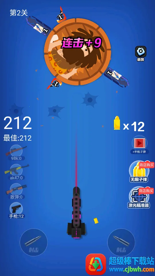 野人神枪最新手机版是一款休闲射击小游戏,采用简单经典卡通画风,画面鲜艳明亮。玩家通过射击瓶子获分数过关赢奖励、升级武器、解锁皮肤,还有转盘赢大奖,玩法趣味,关卡丰富,无需网络,各年龄段皆宜。