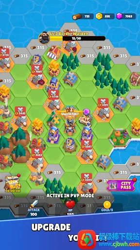 六角战士是一款超有趣的策略战旗类塔防手游。在游戏里,你能占领金矿获取源源不断的金币,用金币翻转土地解锁战士和防御塔。战斗时,消耗金币翻开土地,随机出现的战士会自动前进攻击敌人领地,防御塔则抵御敌人进攻,成功占领对手领地就能获胜。