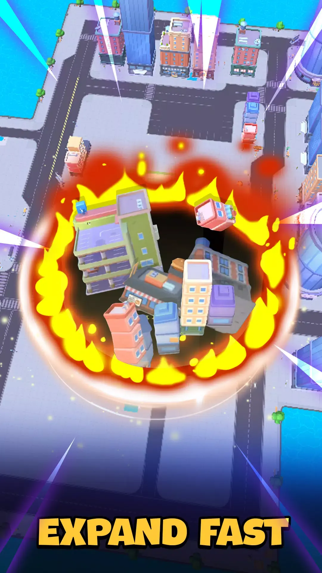 控制神秘黑洞在地图上滑动,移动恐龙洞收集汽车、树木和建筑,通过吞噬洞穴不断壮大。