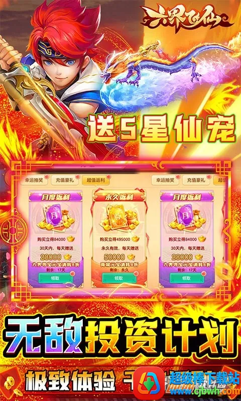 六界飞仙手机版是一款以洪荒为背景的修仙放置游戏。其3D美术风格结合顶级特效,带来精彩修仙体验。游戏福利超丰厚,全场充值0.1折,上线送VIP13等。玩法多样,能收服仙宠冒险,还有四大职业可选,自带挂机系统。社交互动丰富,可结情缘。画面精美,人设精致,剧情原创。战场PK激爽,还有回魂仙梦等挑战。百变造型,上古萌宠相伴,酷炫坐骑骑战天下。是一款福利满满、玩法丰富的仙侠手游。