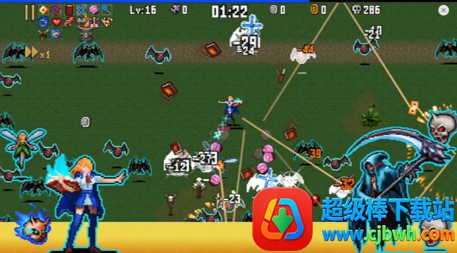 1. 武器合成与升级:游戏内有7种基础武器,通过特定条件进阶合成更强大的武器。如斧子与蜡烛合成后可改变攻击方式,十字架与幸运四叶草进阶后射程、射速和伤害大幅提升等。
