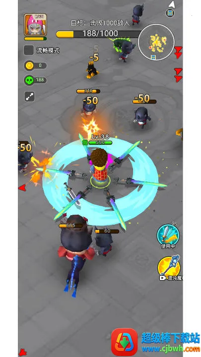 1. 玩家可解锁不同水平游戏,添加割草模式免广告并学习众多技能。