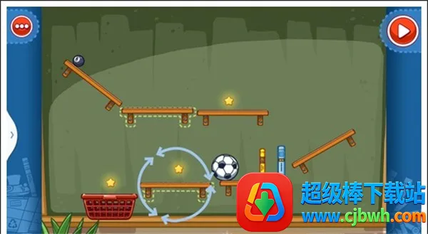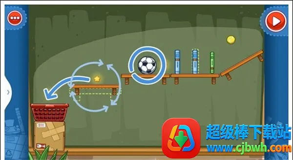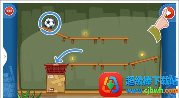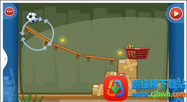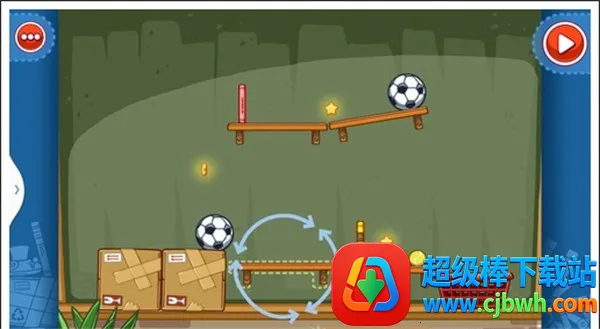 我们只需要将两个木箱重叠放在中间空白处,就可以让球飞过去,获得星星。