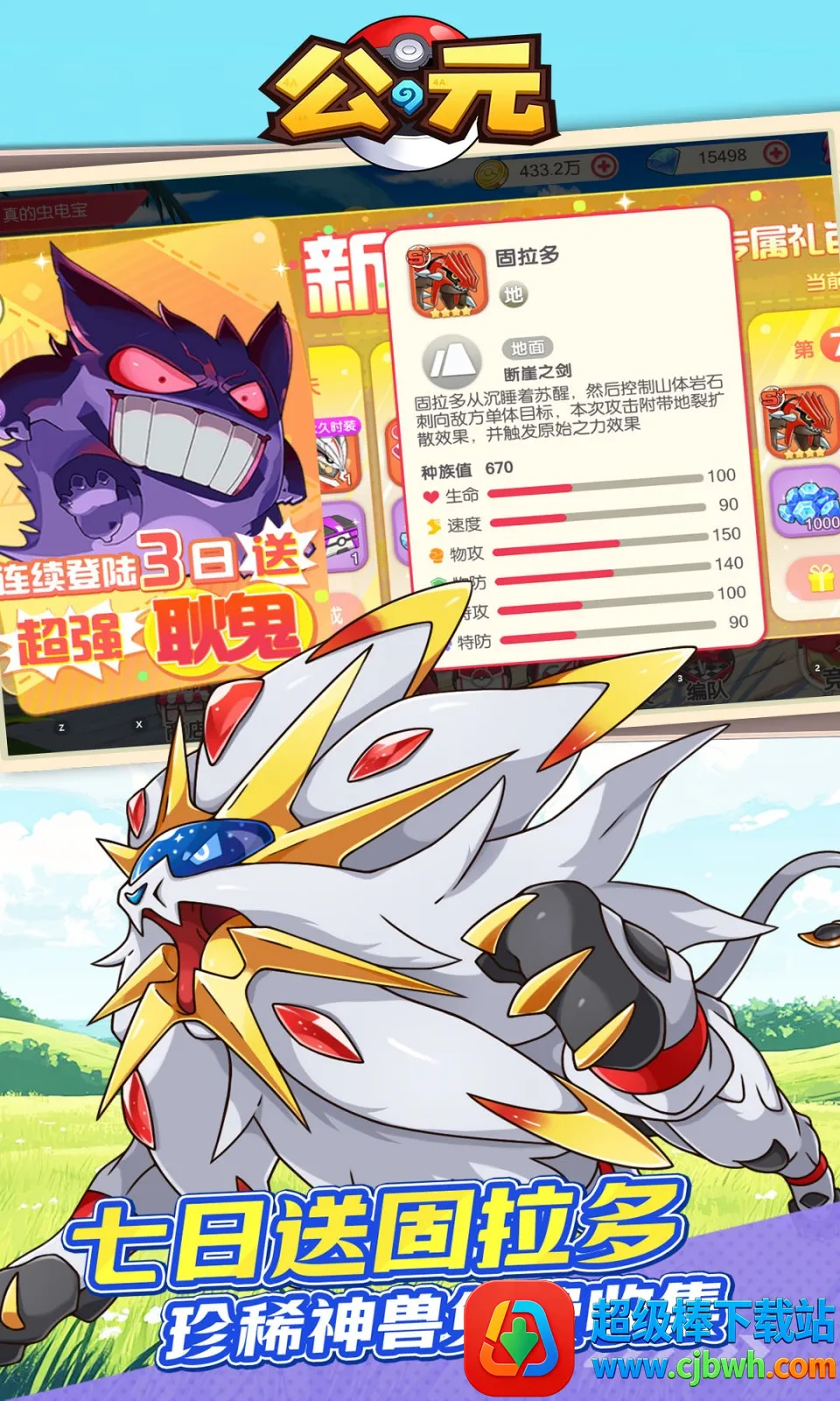 登录即可免费领取梦幻,连续登录3日送耿鬼,7日送固拉多,珍稀神兽助力游戏。