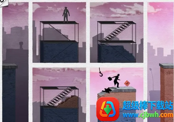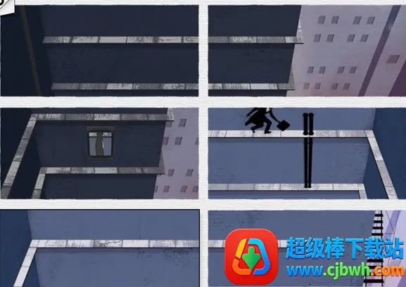 按照下图所示的致命框架攻略移动插画的位置,这样主人公便可以顺利躲过警察的追捕并且借助左下角图片上的钩子滑到最后一幅图上,避开那些讨厌的木棍。