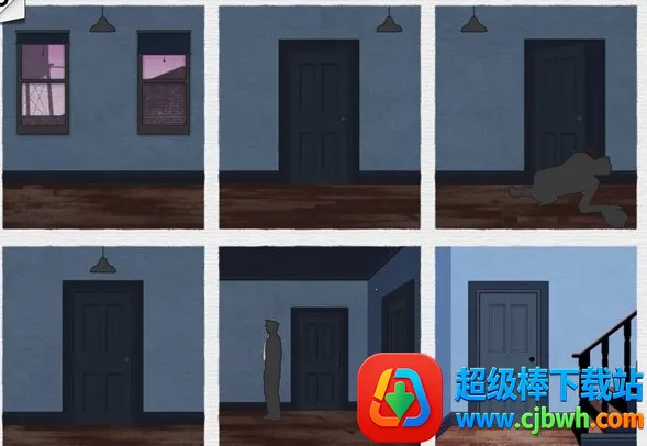 随后来到了第三个场景,倒霉的主人公在众多的房间当中穿梭,却不料RP不好,乱了阵脚,被守株待兔的警察给逮了个正着……如果我们按照下图移动插画的位置,主人公的RP爆表,错过了警察之后便可以从楼梯逃走。小编也不知道怎么回事,自从玩了致命框架攻略之后也忍不住站在了我们的主人公这边,明知与警察作对实则不对,却还是忍不住为逃过一劫又一劫的黑衣人拍手叫好。