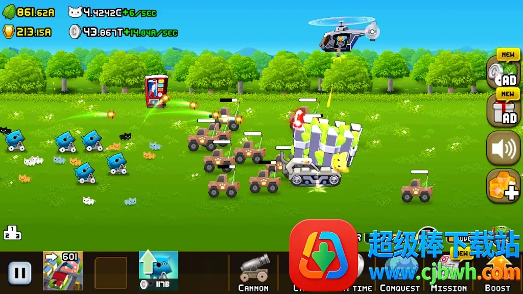 1. 可爱画风萌趣十足:猫咪角色与加农炮造型超萌,发射炮弹反馈轻松愉快。