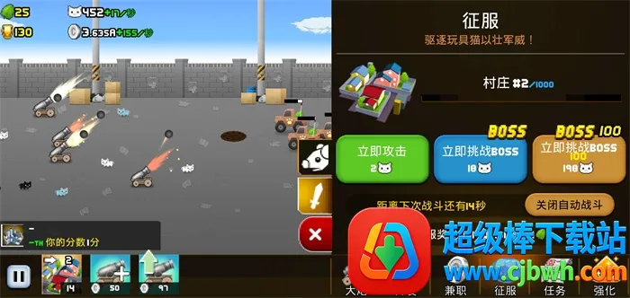 1、火炮打造升级:能创建并升级火炮,打造巨型炮兵,组建强大猫咪军队,让战斗实力更上一层楼。
